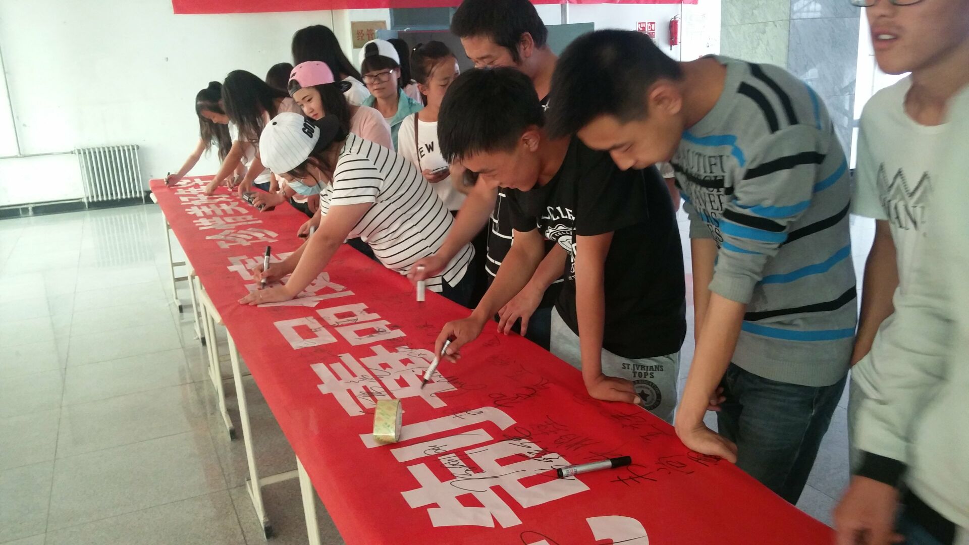 本次活动以学生禁毒教育宣传暨签名活动为主体,准备了内容为“抵制毒品侵害、珍惜美好年华”的横幅,邀请全系师生在横幅上签名,呼吁广大师生认清毒品危害,拒绝毒品。