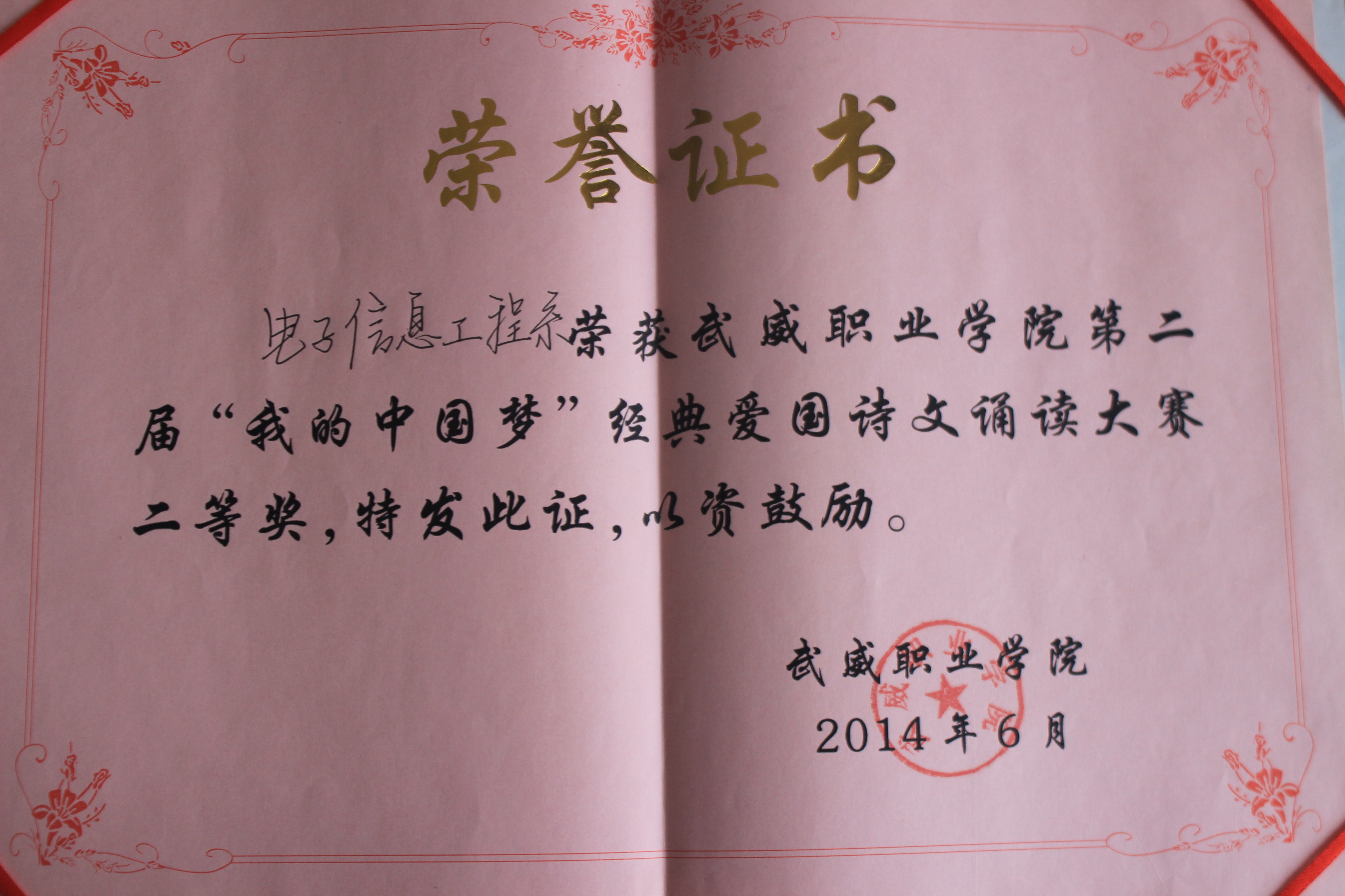 第二届“我的中国梦”经典爱国诗文诵读大赛-二等奖