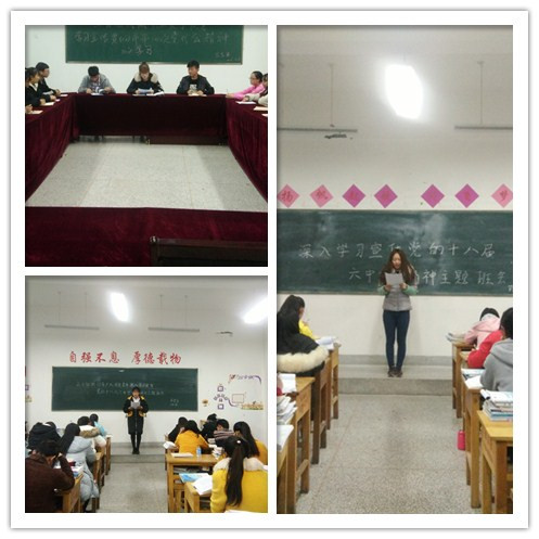 为深入学习宣传十八届六中全会精神,引导广大团员青年准确把握全会的精神实质和深刻内涵,药学系团总支结合两学一做学习教育和贯彻落实武威市第四次党代会精神,于12月7日晚,在明远楼组织各班团支部开展了学习党的十八届六中全会精神主题团会。团会由各班团支部书记主持,会议传达了十八届六中全会精神和武威市第四次党代会精神,领学了《中国共产党第十八届中央委员会第六次全体会议公报》内容。