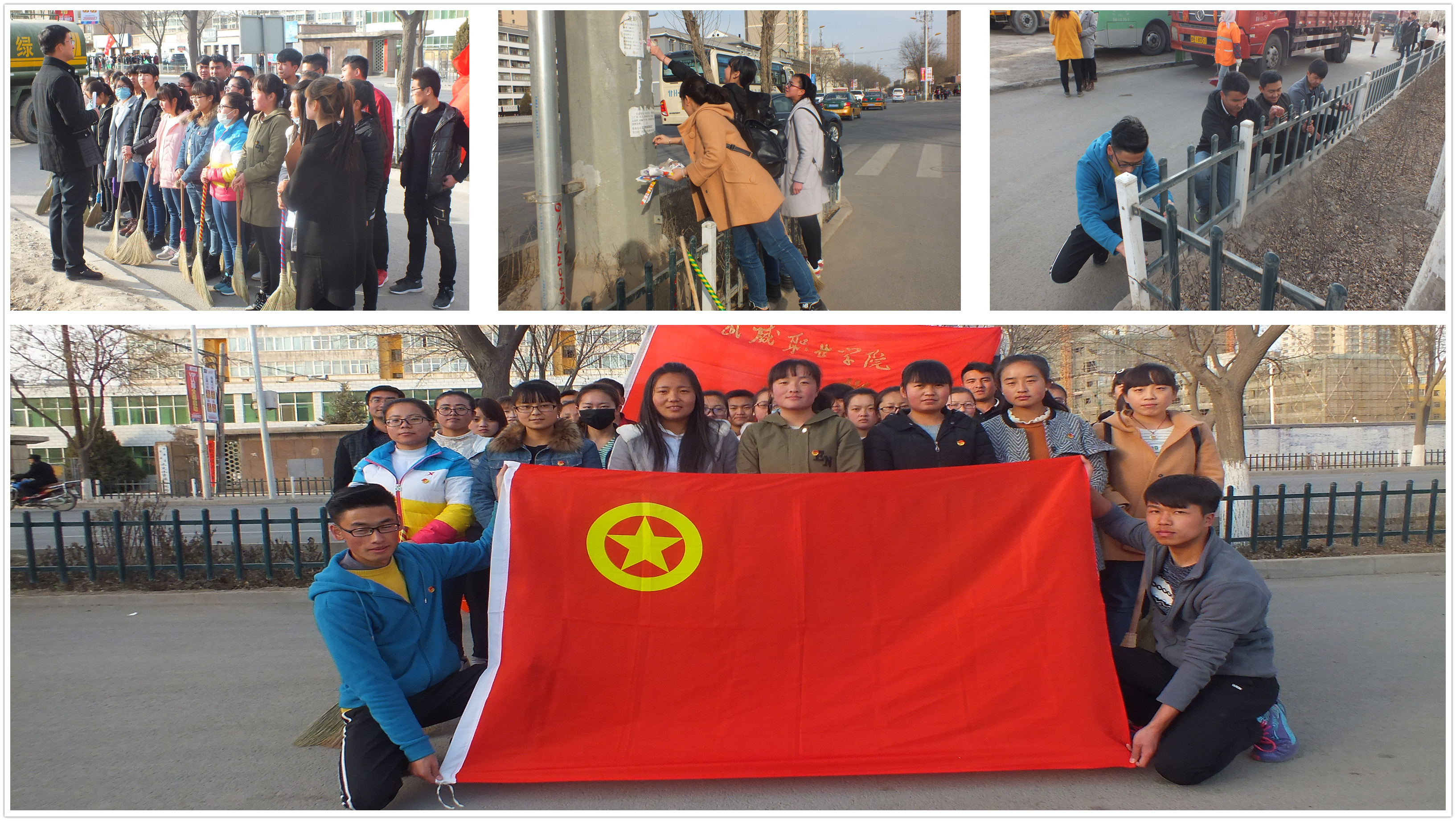 三月春风拂职院,雷锋精神暖人心。沿着雷锋的足迹,秉承雷锋精神。3月3日下午,药学系团总支结合院团委安排,组织广大青年志愿者进行“传承雷锋精神,共建美丽校园”雷锋日主题教育实践活动,青年志愿者们纷纷走上街头,尽己所能,对学院周边道路环境卫生进行打扫,广告清理,垃圾清运等志愿服务活动。青年志愿者们积极劳动,传播青春正能量,为建设美好家园,贡献微薄力量。