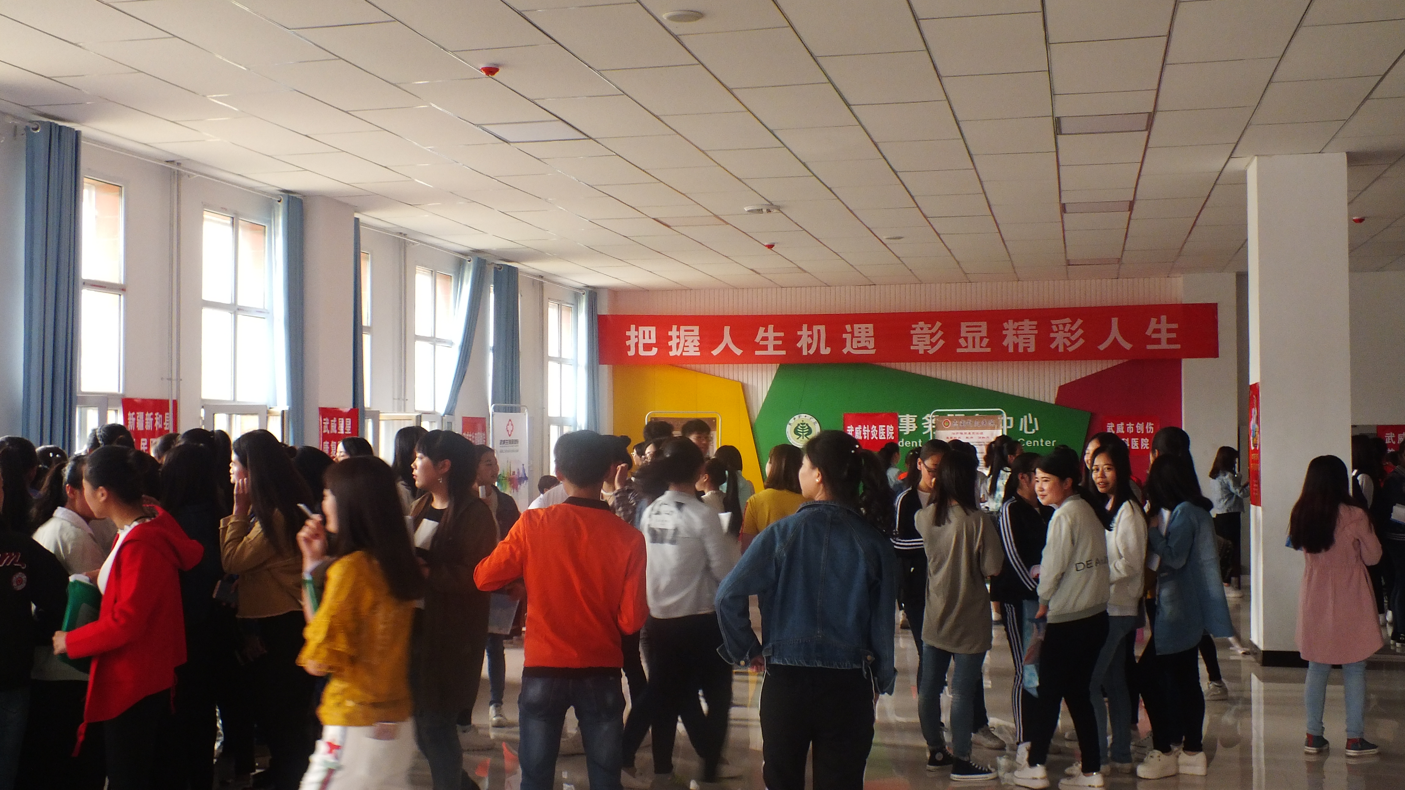 为促进我院护理、助产专业发展,拓宽毕业生就业渠道,搭建毕业生与用人单位双向交流平台,学院于5月15日在大学生活动中心举办了2017届护理、助产专业毕业生校园专场招聘会,共有来自省内外的12家医疗机构及相关企业来我院选拔人才,护理系400余名2017届毕业生参加了本次招聘会。在招聘会上,毕业生向各用人单位递交了个人简历,并咨询了个人就业的相关问题,100余人与就业单位达成初步就业意向,40余人与就业单位现场签订就业协议。