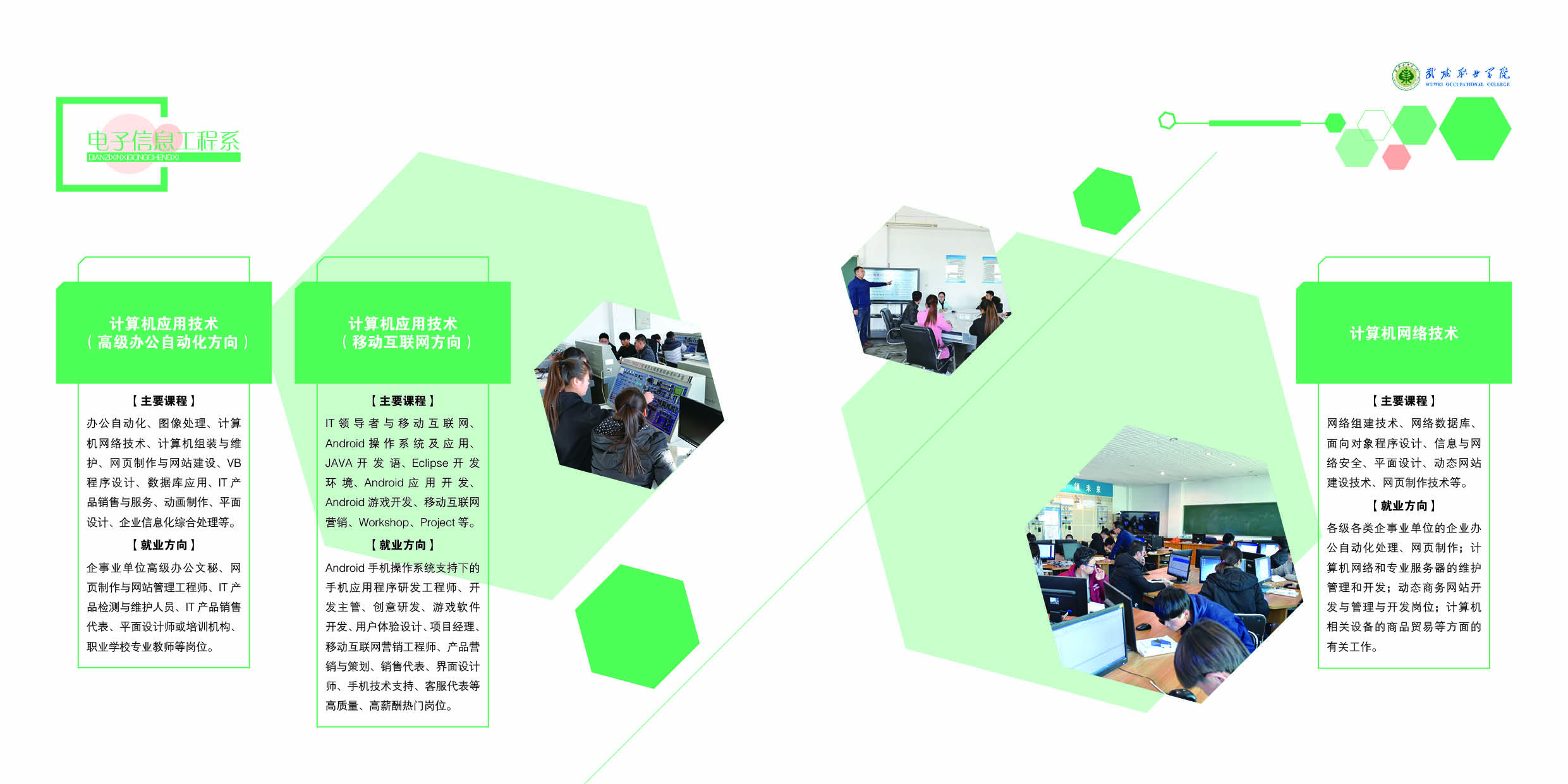 主要课程:办公自动化、图像处理、计算机网络技术、计算机组装与维护、网页制作与网站建设、VB程序设计、数据库应用、IT产品销售与服务、动画制作、平面设计、企业信息化综合处理等。