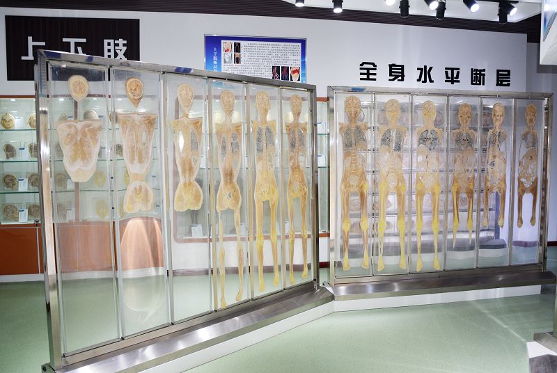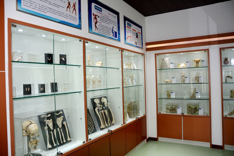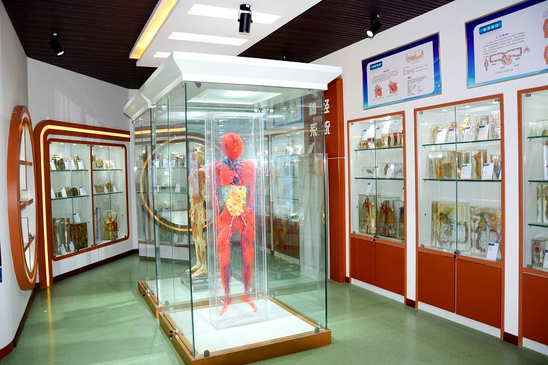 “人体生命科技馆”占地210平米,共设置系统解剖陈列标本266件,局部解剖陈列标本166件,铸形标本31件,断面标本3件,护理应用解剖标本26件,解剖塑化标本5件,充分展现了从骨骼、关节、肌肉、脏器、血液系统、神经系统的人体各个部分,对于护理等医学类专业学生加强对人体结构了解起到了重要作用。