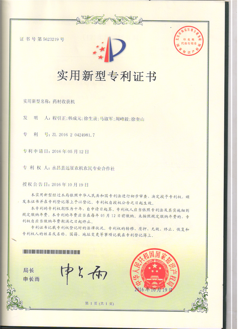 科研成果---实用新型专利:杆齿式废膜捡拾机