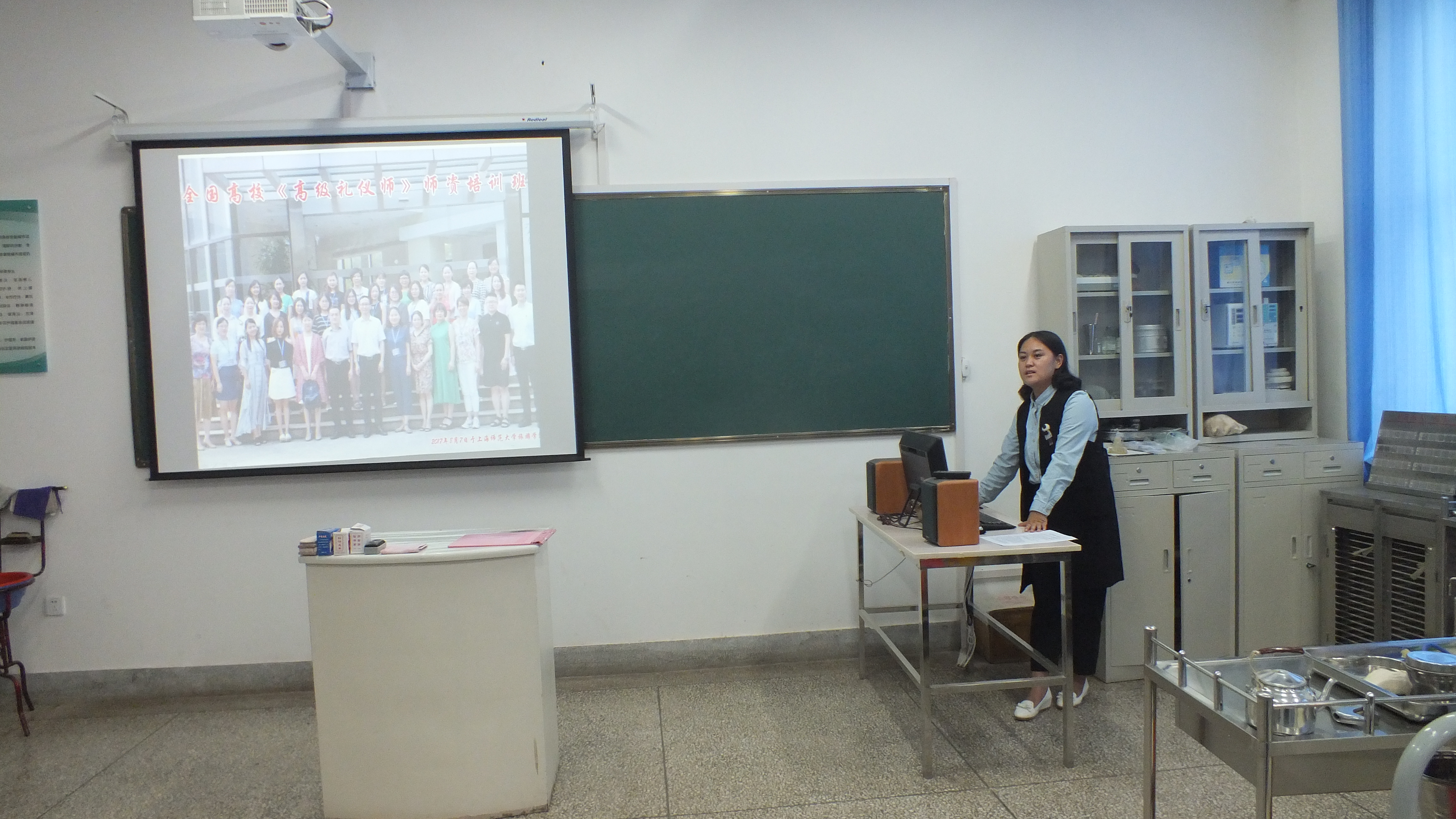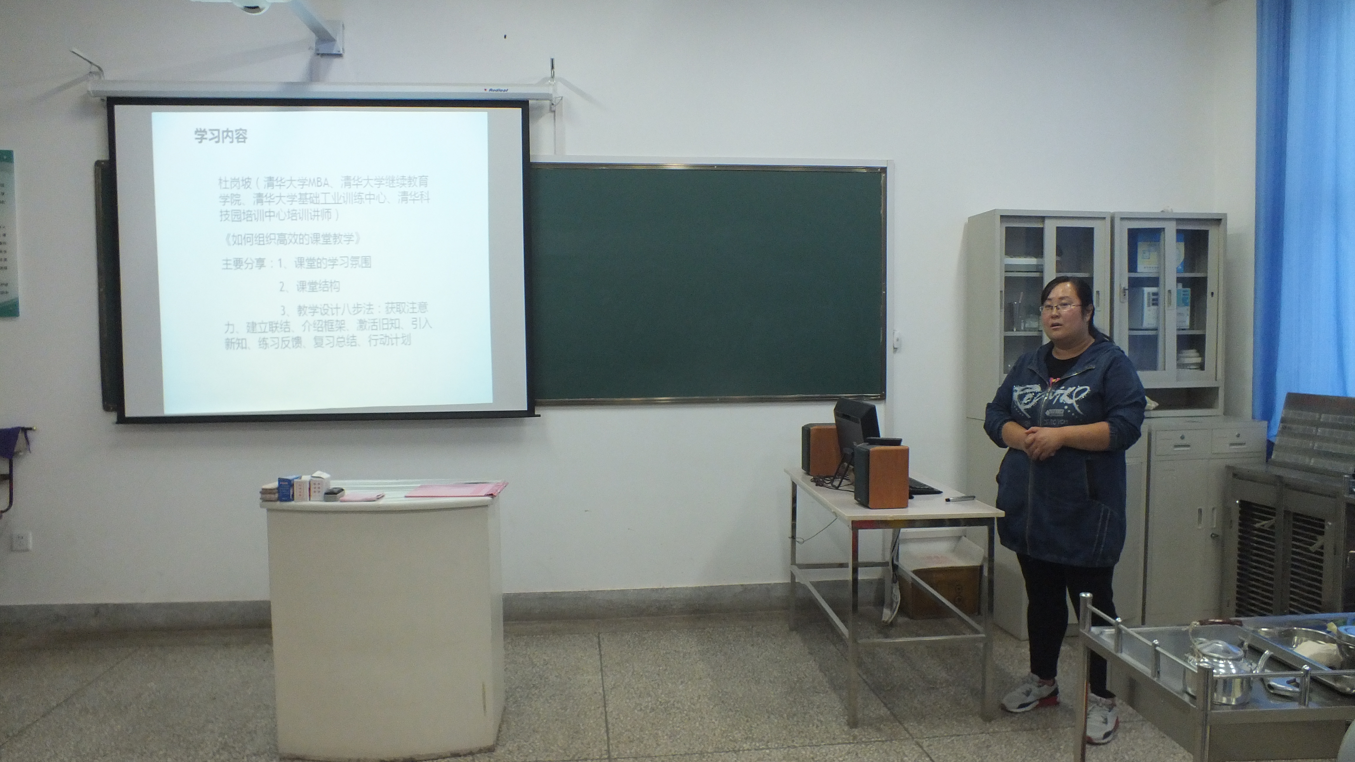 去北京参加全国职业院校教练式教学方法与课堂教学设计高级研修班的梁育霞老师主要汇报了学习到的教学方法和课堂设计,一堂精彩的课程要有一个恰到好处的课堂设计,好的课堂设计又要结合好的教学方法,鼓励老师们多与经验丰富的老师们交流经验提高课堂设计水平。