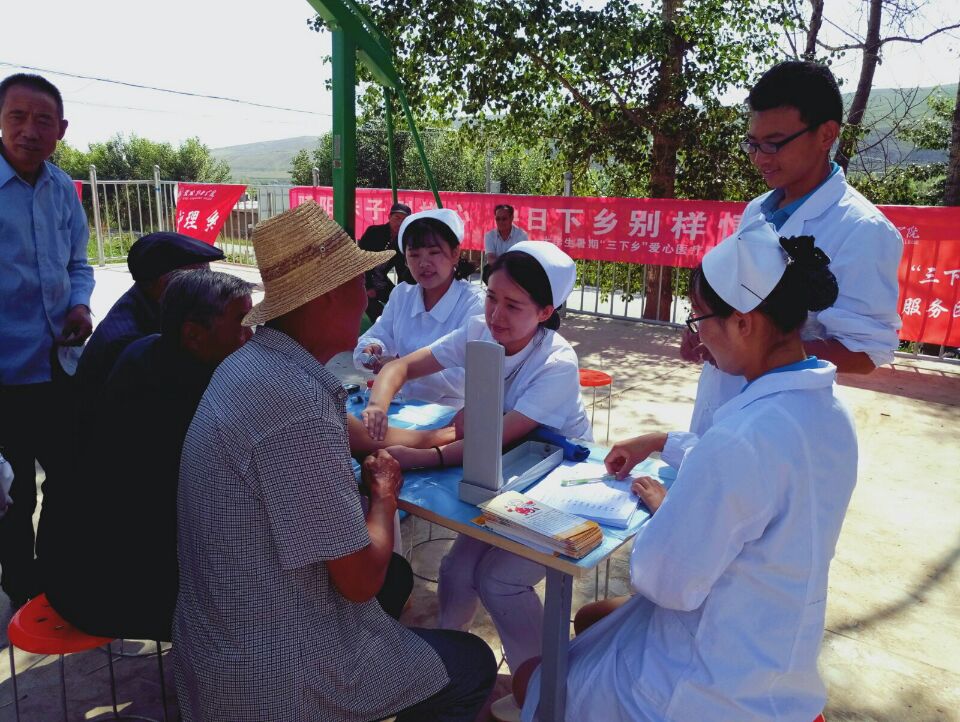 2017年暑假期间,护理系积极响应院团委暑期“三下乡”社会实践活动的号召,组织11名学生成立了“爱心医疗服务团”,赴武威市新井村、张义镇、武威第十一中学、小洪沟河湾村、沙金台村等多地开展了为期6天的社会实践活动。