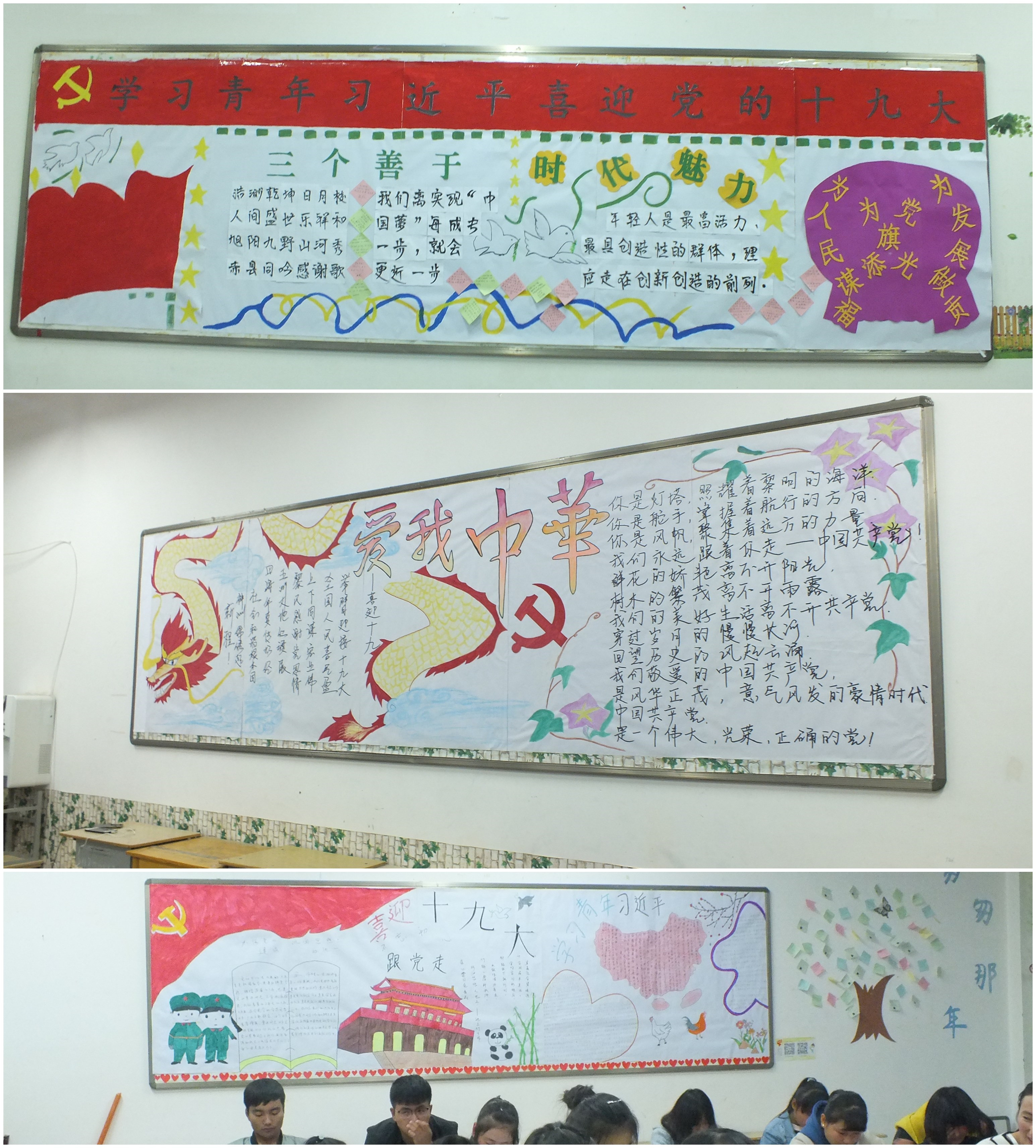 在党的十九大即将召开之际,为进一步深化“中国梦”和“社会主义核心价值观”主题教育,增进我系学生的爱国热情和团结意识,营造良好的校园文化氛围,引导学生准确把握中国梦的本质属性,将个人梦想融入中国梦中,自觉增强奋斗拼搏精神,积极践行社会主义核心价值观,10月10日,经我系党总支研究决定,由系团总支负责,各班团支部开展“学习青年习近平,喜迎党的十九大”为主题的黑板报评比活动。