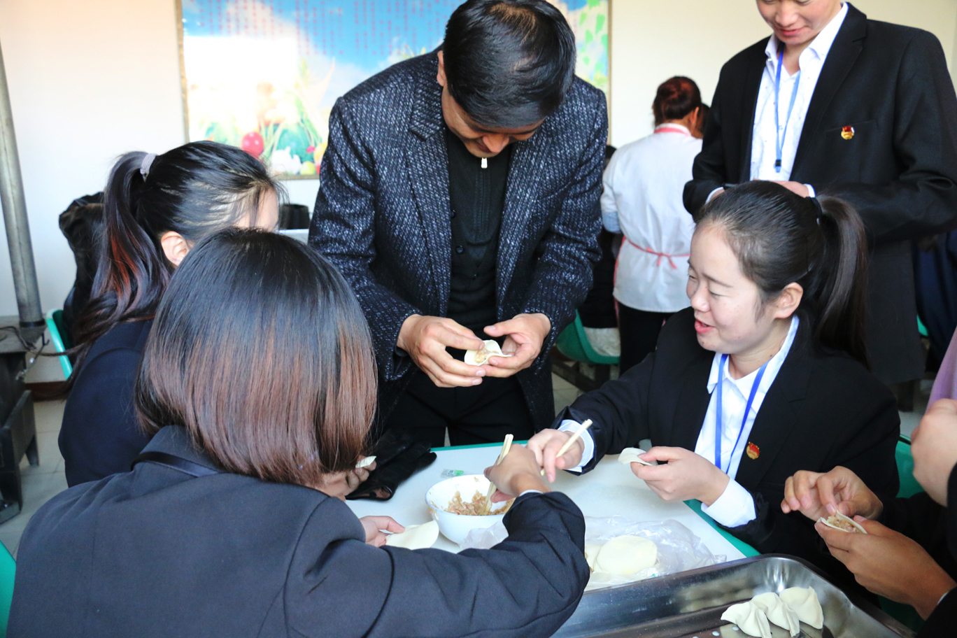 上午八点半,医学技术学院各位党员、入党积极分子、团学干部、师生代表在厨房为老人包饺子,并整理被褥;康复治疗专业教师党员高万飞为老人讲解“如何健康养生”;系团总支为老人们送上毛巾、牙膏、香皂等日常生活用品;爱牙协会的志愿者为老人,进行牙齿检查,讲解如何爱护牙齿;中医养生协会的志愿者为老人们测血压,演示常用的按摩方法。中午时分,老人们吃着热气腾腾的饺子,看着全系师生代表为老人们准备的精彩节目,脸上洋溢着幸福的笑容。