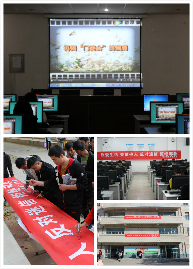 为了建设和谐校园,维护社会稳定,净化教育系统校园,电子信息工程于10月30日晚,在尚德楼11号机房开展了反邪教宣传片放映活动。