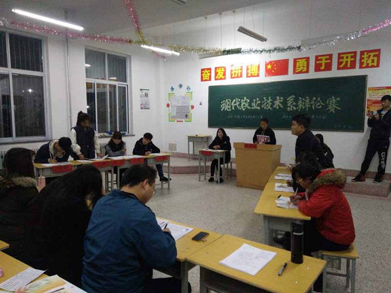 11 月12日晚,现代农业技术系2017年大专辩论赛决赛在行树楼105教室成功举行,系党总支书记晏素珍、团总支书记李强栋及青年教师担任了评委,决赛代表队班级、部分辩论爱好者观看了比赛。