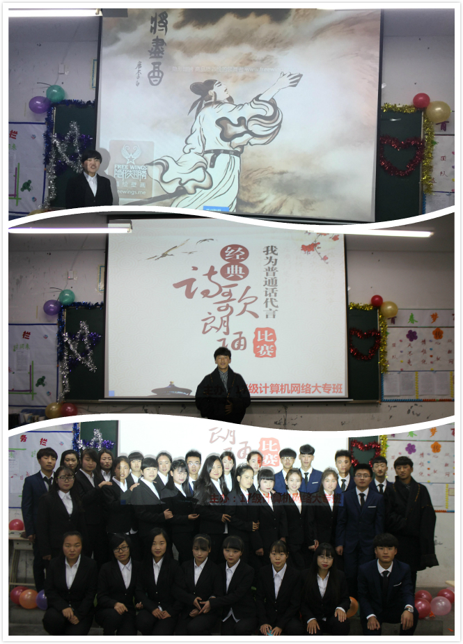 为了弘扬中华民族传统文化,倡导学生立德修身,培育爱国情操,2017年11月20日,17级计算机网络大专班举办了主题为“传承中华文化,共筑青春梦想”经典诗歌诵读比赛。